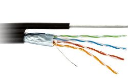 Cabeus FTP-4P-Cat.5e-SOLID-ST-OUT Кабель витая пара экранированная FTP (F/UTP), категория 5e, 4 пары 0,5мм (24 AWG), одножильный, экран - фольга, для внешней прокладки (+60 C - -40 C), с металлическим тросом (305 м)