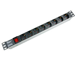 Cabeus PDU-8P Блок евророзеток для 19" шкафов, горизонтальный, 8 розеток, 10 A, выключатель, гнездо под шнур, алюминиевый корпус