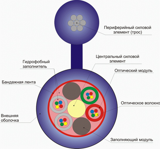 Трансвок ОКП-Т-1/3(2,4)-4(1/50)Сп (3,5кН) Кабель волоконно-оптический 50/125 многомодовый, 4 волокна, с металлическим тросиком, для подвески на опорах линий связи, для внешней прокладки (ОКП-Т-4(1/50)Сп)