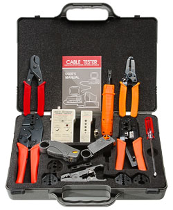 Cabeus HT-4015 Набор инструментов для инсталляции сети (инструмент обжимной для RJ-45/12/11, инструмент обжимной для RG-6/8/11/58/59/62/174/179, обрезка, зачистка, инструмент для заделки витой пары 66/88/110 типа, тестер)