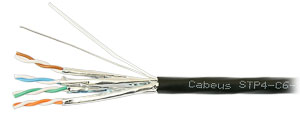 Cabeus STP-4P-Cat.6a-SOLID-OUT Кабель витая пара экранированная STP (U/FTP), категориия 6a (10GBE), 4 пары, 0,57мм (23 AWG), одножильный (solid), экран - фольга, для внешней прокладки, каждая пара в экране (фольга) (305 м)